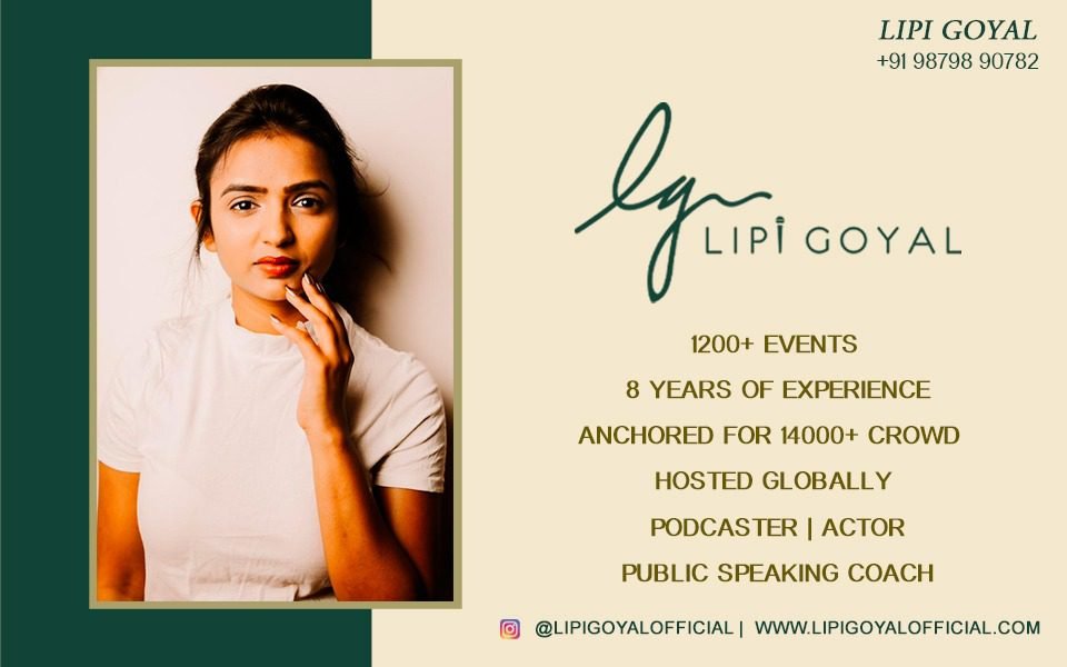 Emcee Lipi Goyal is an anchor-actor-soft skills trainer, known to establish an instant connection with her audience. Fast progressing on the path of success in Mumbai’s showbiz. Her passion for her job and ability to permeate beneath what meets the eye is at the heart of any event she has hosted.