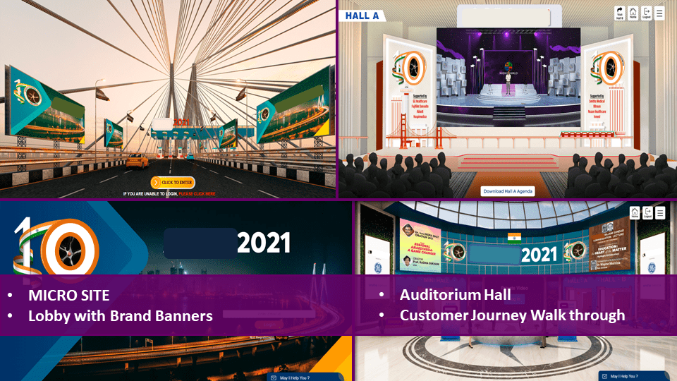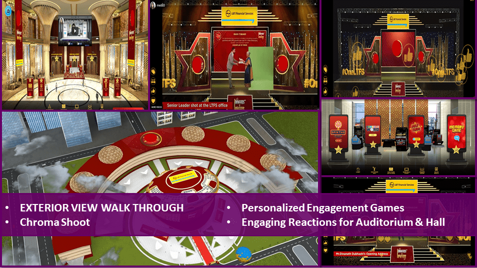 1. Virtual Events and Expos - We do high-end tailormade customizations for all the virtual events and exhibitions to create unforgettable digital experiences for your clients. You can dig into the ROI of the event with our robust analytics.